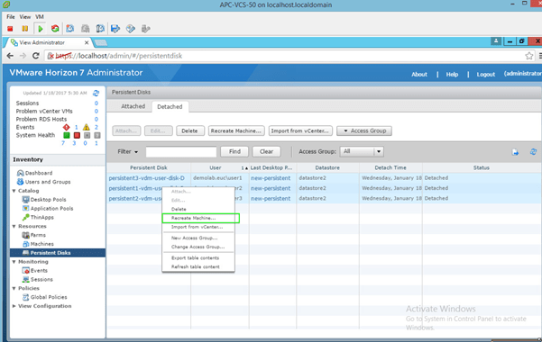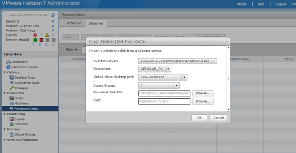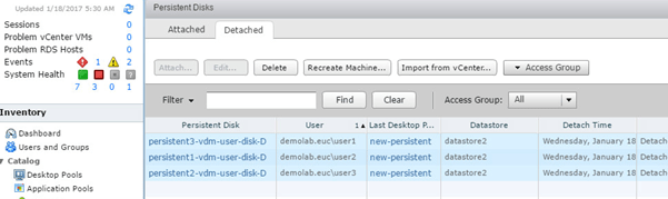 Migrating Desktops with Persistent disks to new VMware Cluster and Desktop Pool